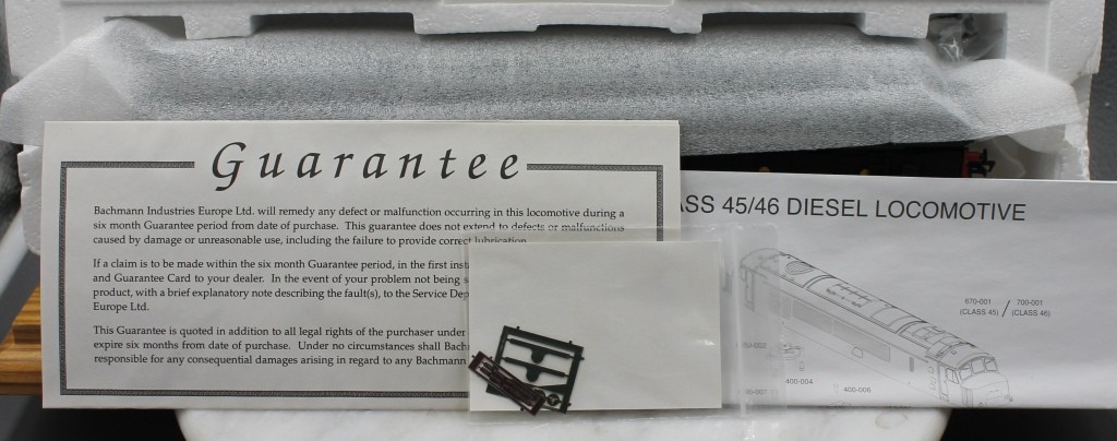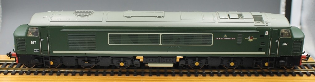 Bachmann 32-675 Class 45 Peak D67 The Royal Artilleryman in BR Green livery. In excellent condition. In original box with instructions and metal name plates.