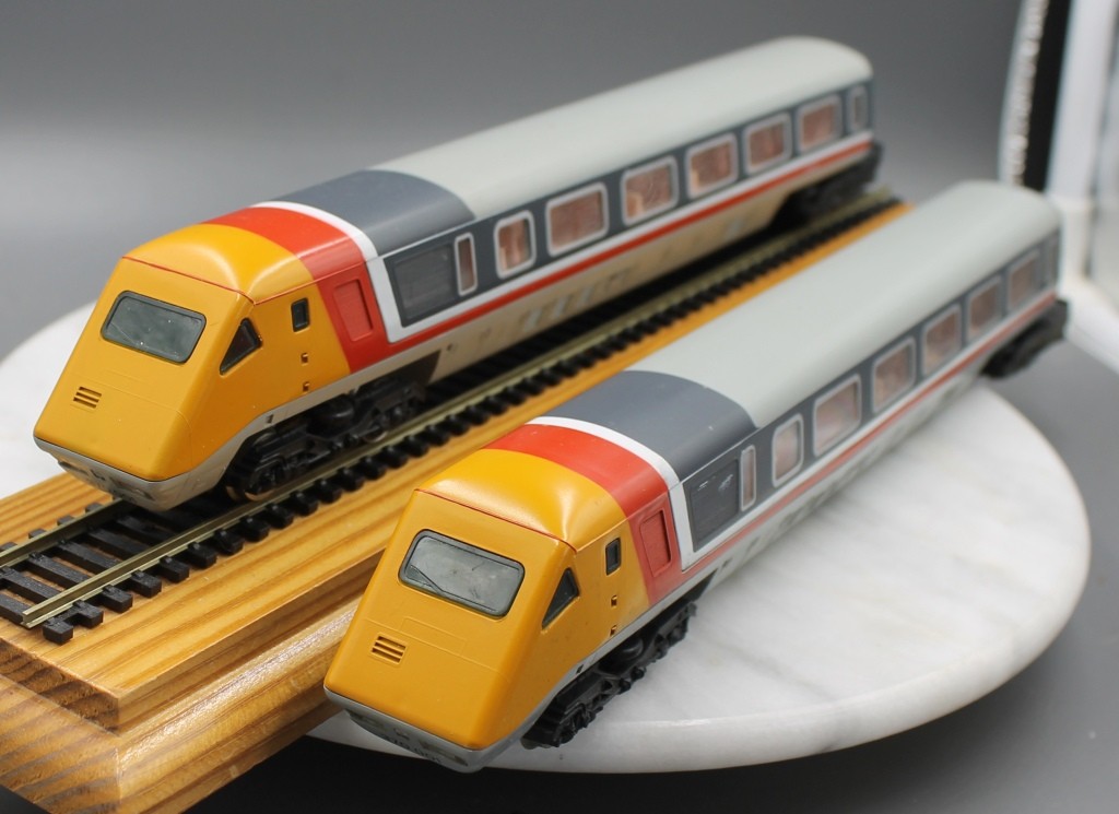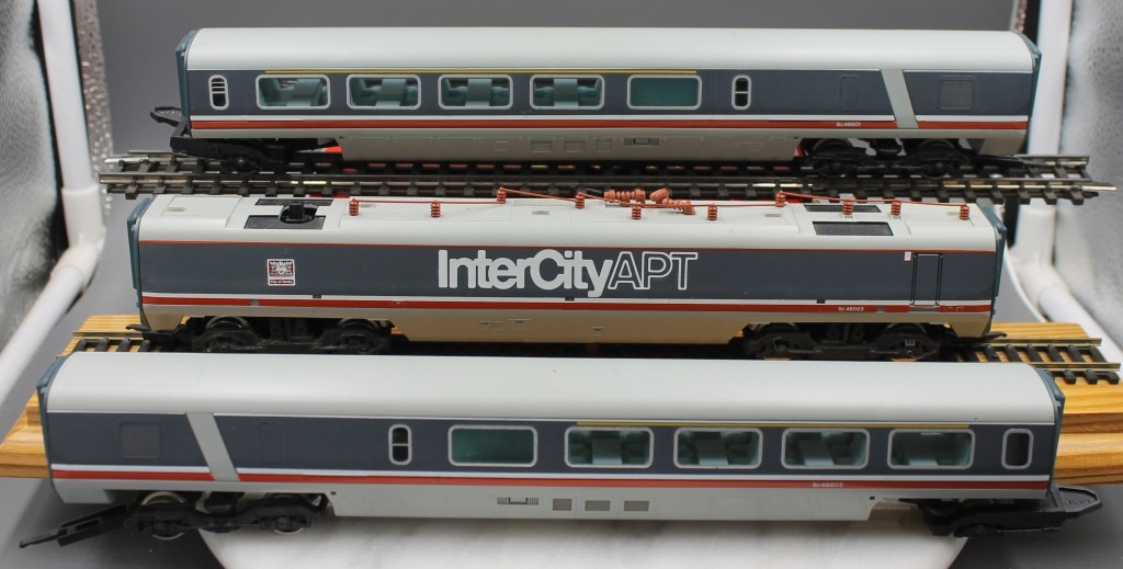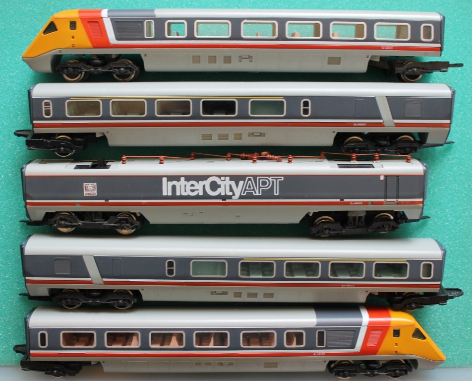 Hornby Apt Advanced Passenger Train Set in Inter City Grey and Grey livery . In good condition, although pantograph missing. No box.