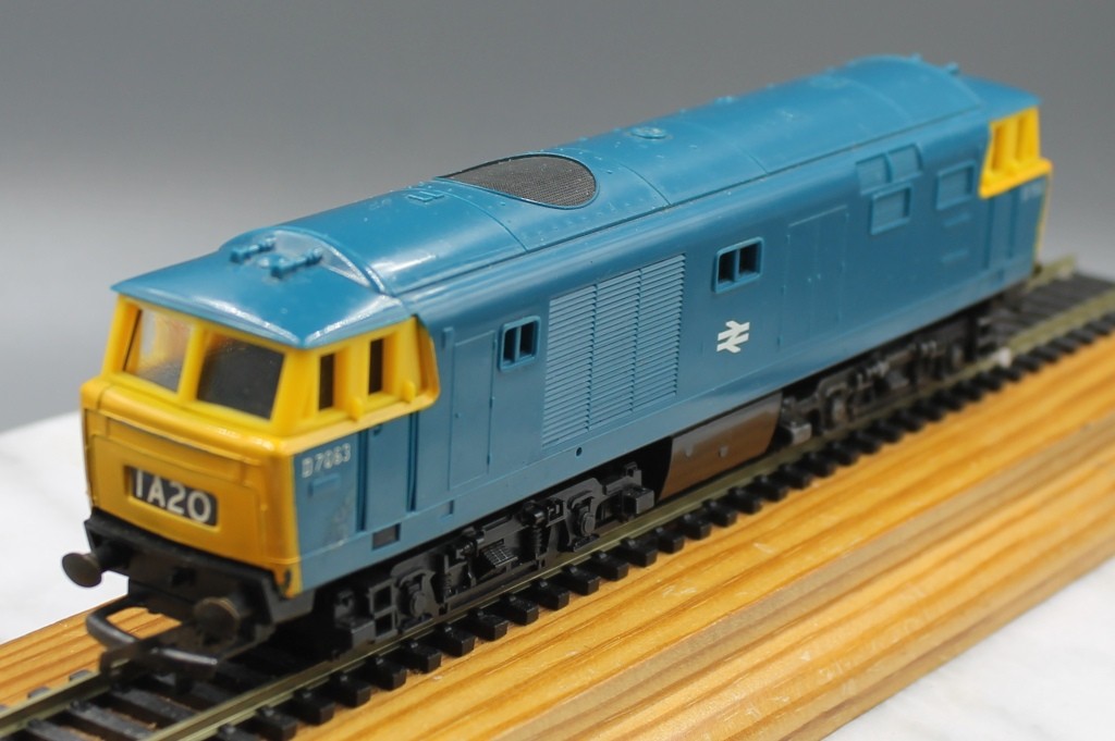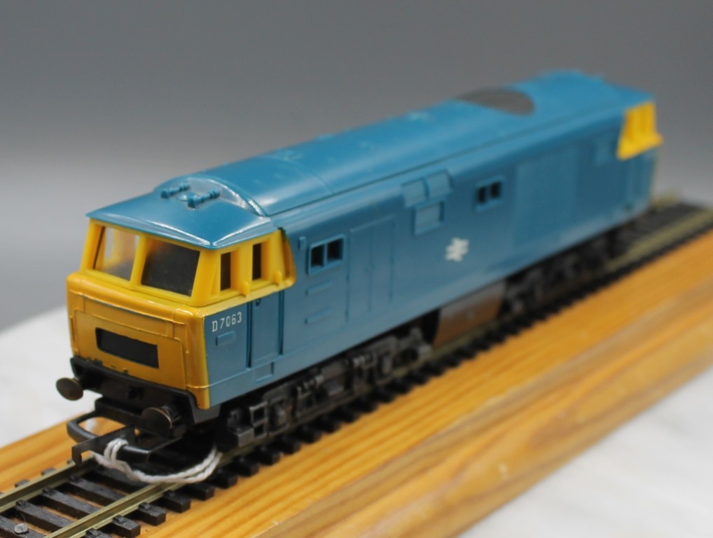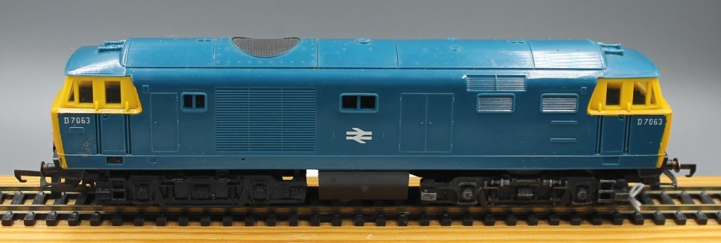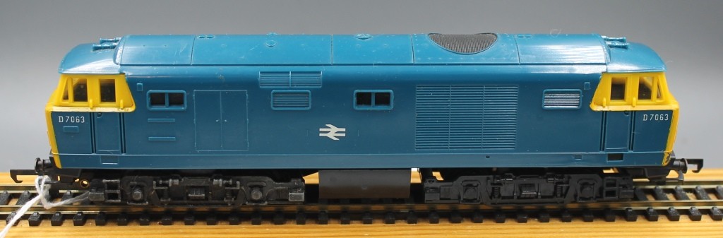 Triang Hornby R758 Class 35 Hymek Loco BR Blue livery, number D7063 . In good condition, one headcode label missing. No box.
